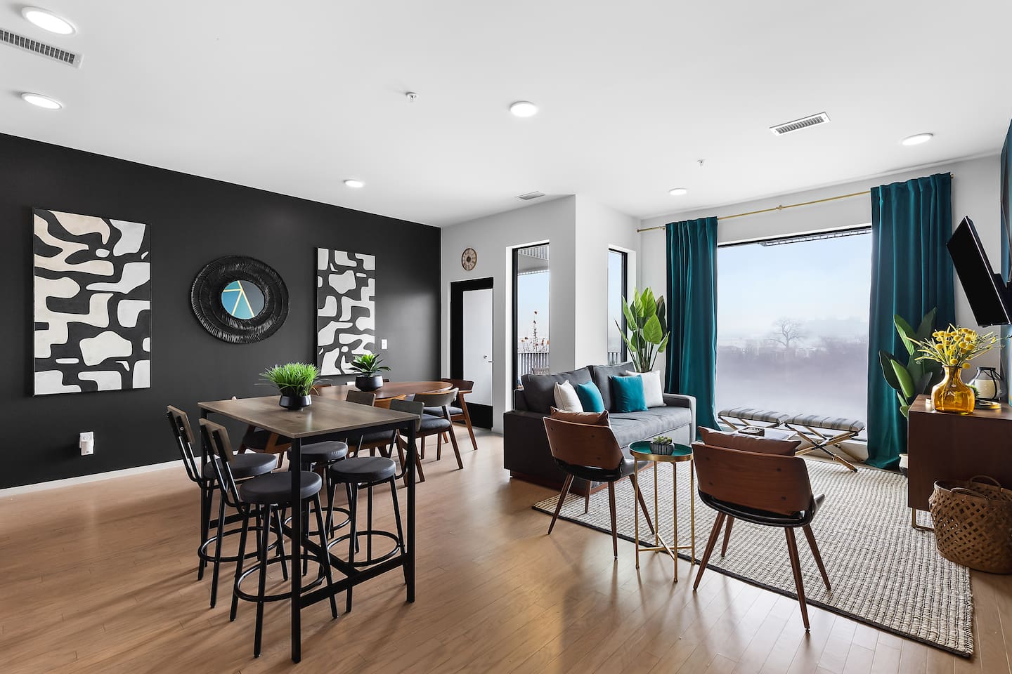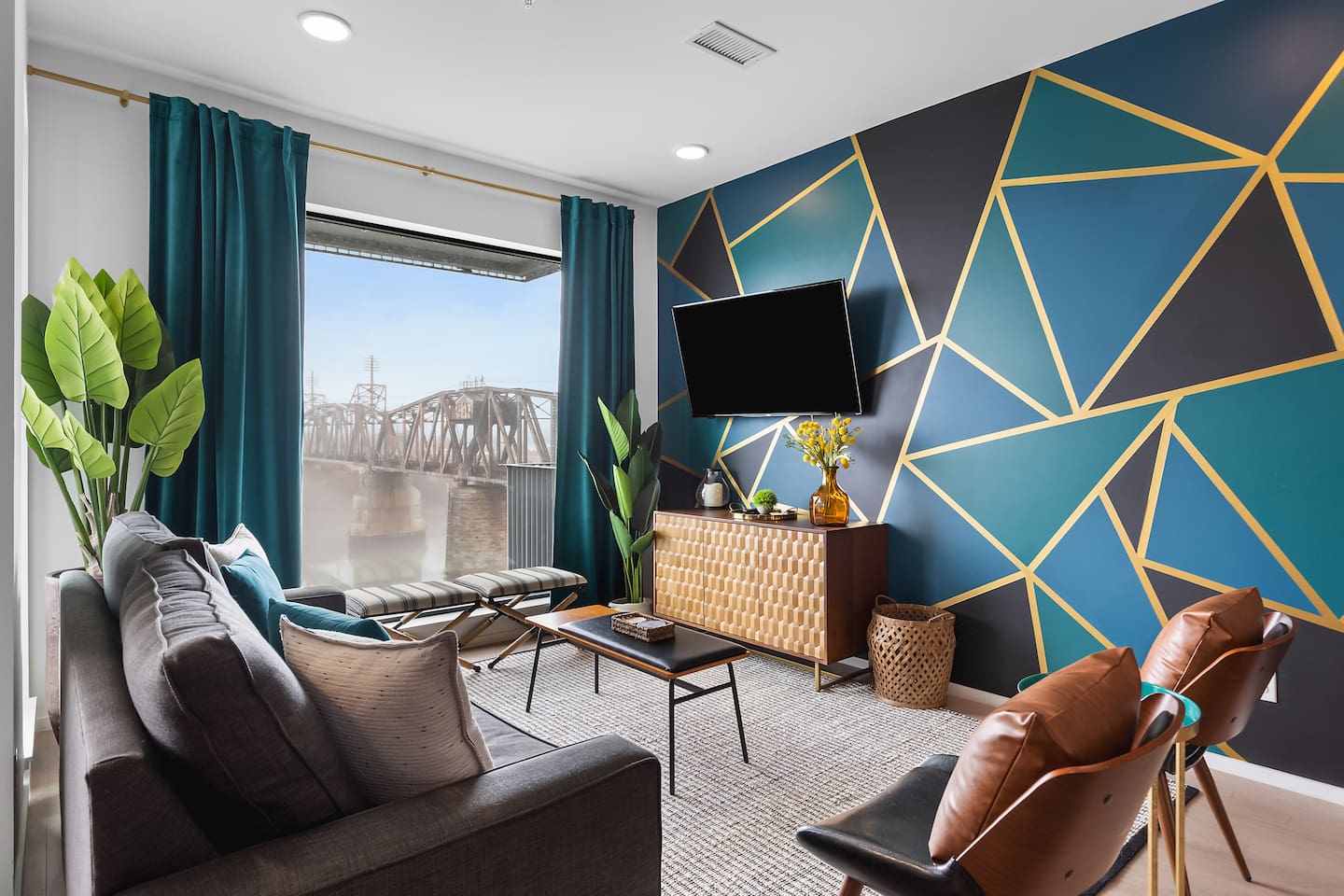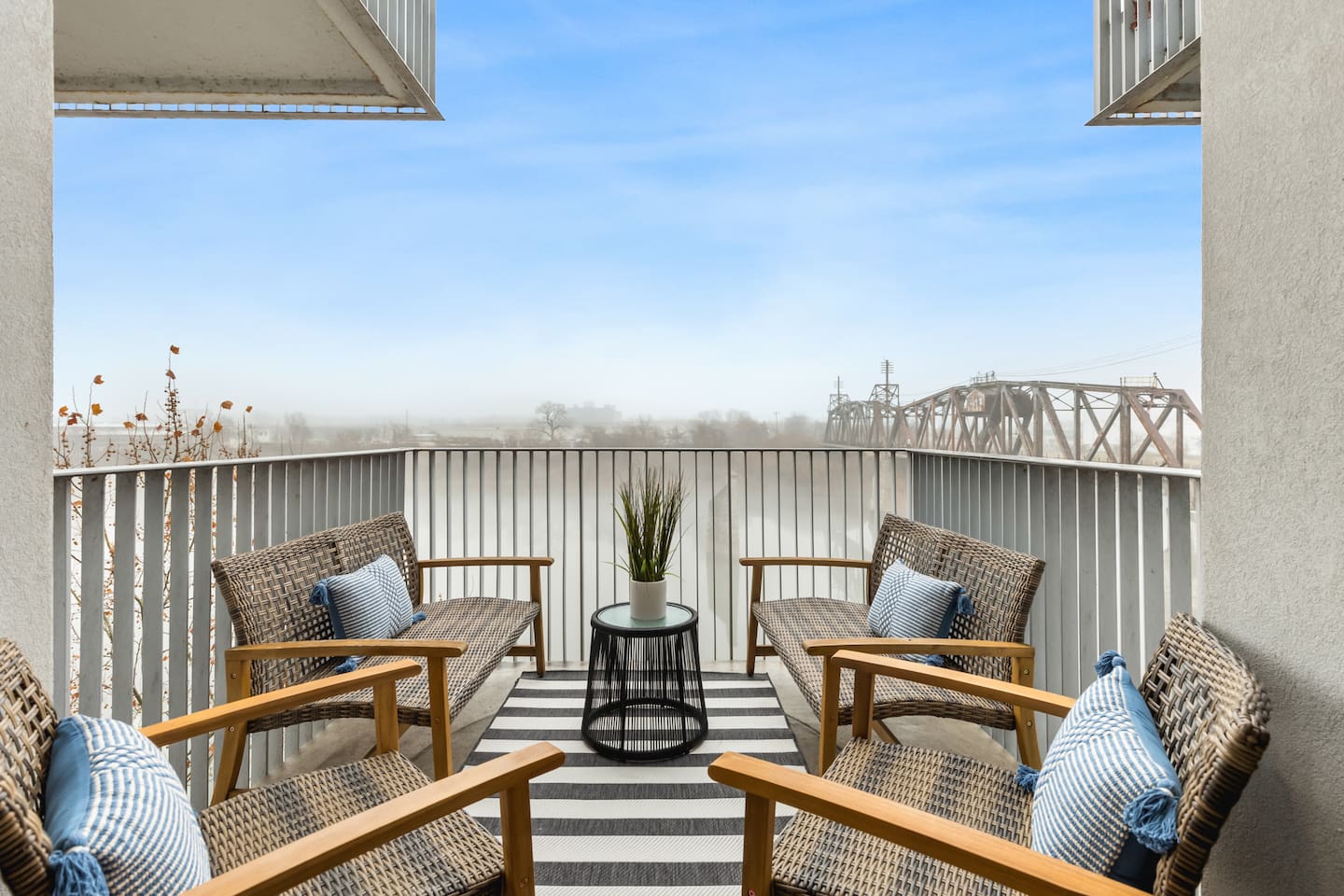 WALK to Downtown Nashville while staying at this stunning condo that overlooks Cumberland River. Centrally located w/ 2 parking spots in a gated garage, TVs in bedrooms, washer/dryer. Enjoy your morning coffee on our private patio overlooking the river! Walking distance to downtown Nashville Broadwa...