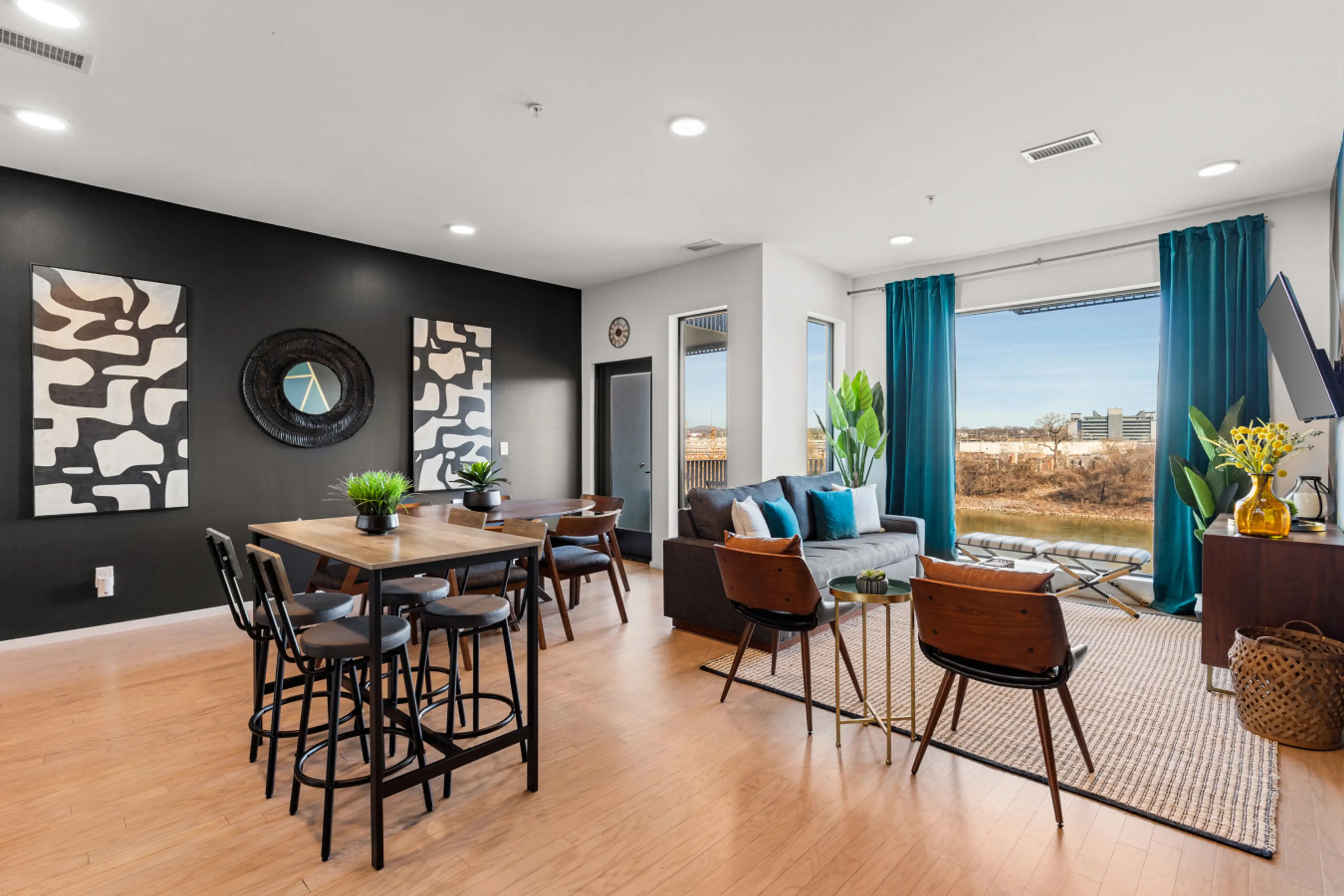 WALK to Downtown Nashville while staying at this stunning condo that overlooks Cumberland River. Centrally located w/ 2 parking spots in a gated garage, TVs in bedrooms, washer/dryer. Enjoy your morning coffee on our private patio overlooking the river! Walking distance to downtown Nashville Broadwa...